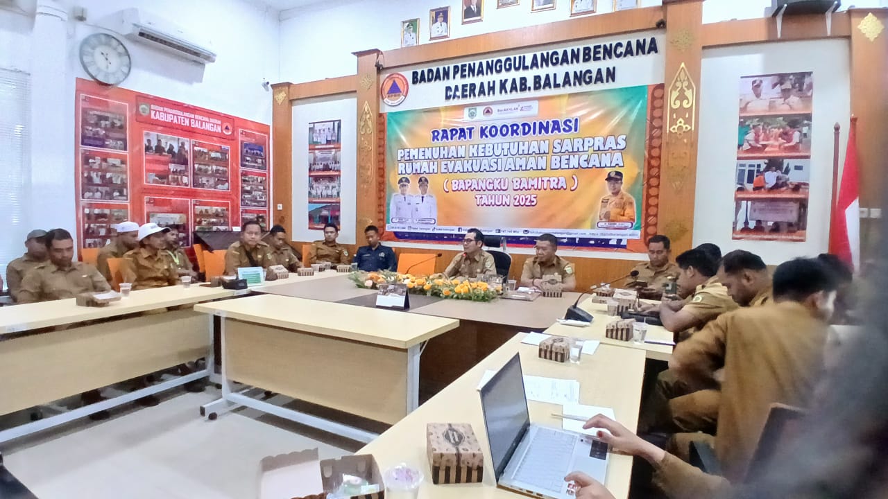 bakabar.com, PARINGIN - Memaksimalkan fungsi Rumah Evakuasi Aman Bencana di delapan desa, BPBD Balangan melalui Bidang Rehabilitasi dan Rekonstruksi menggelar Rapat Koordinasi Pemenuhan Kebutuhan Sarpras Bapangku Bamitra 2025. Rakoor ini digelar di Kantor BPBD Balangan, Senin (13/10/2025).